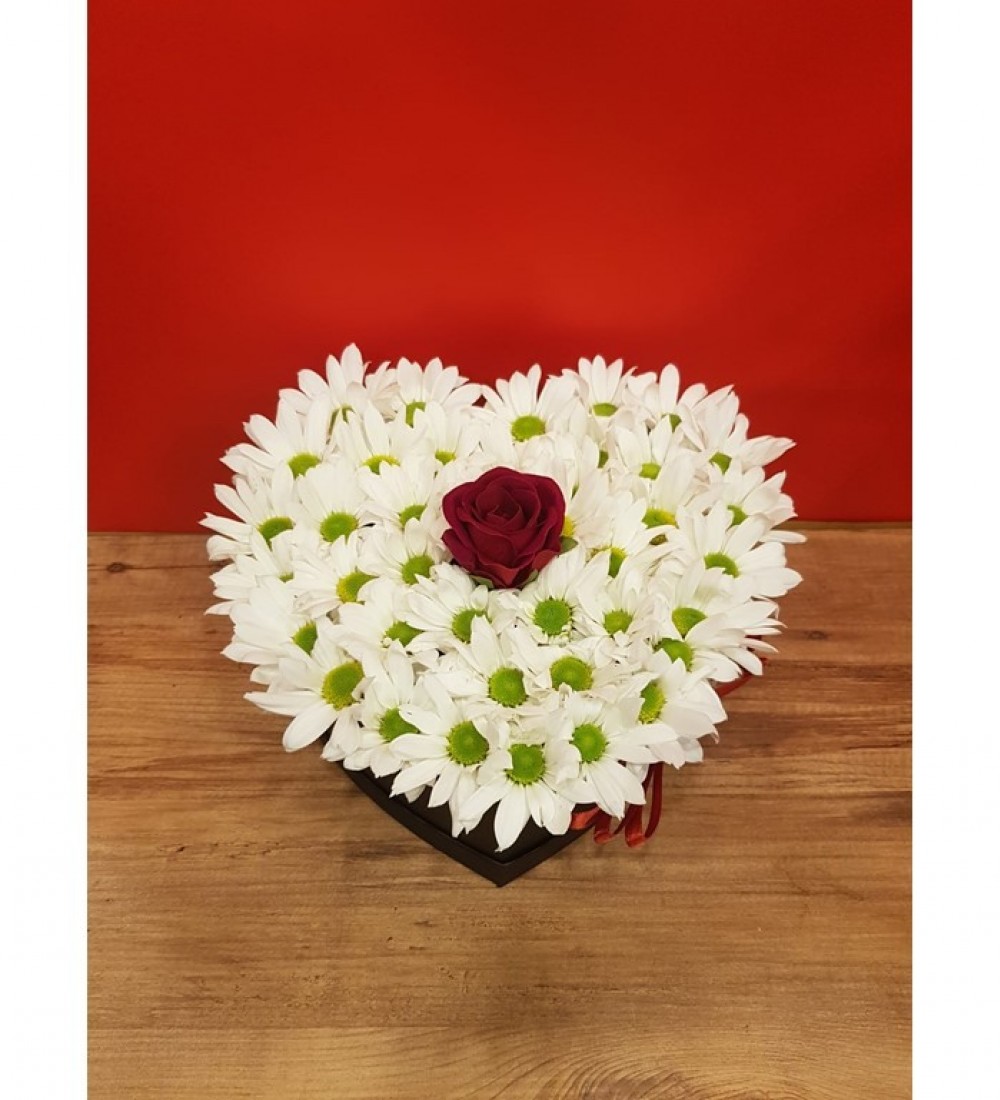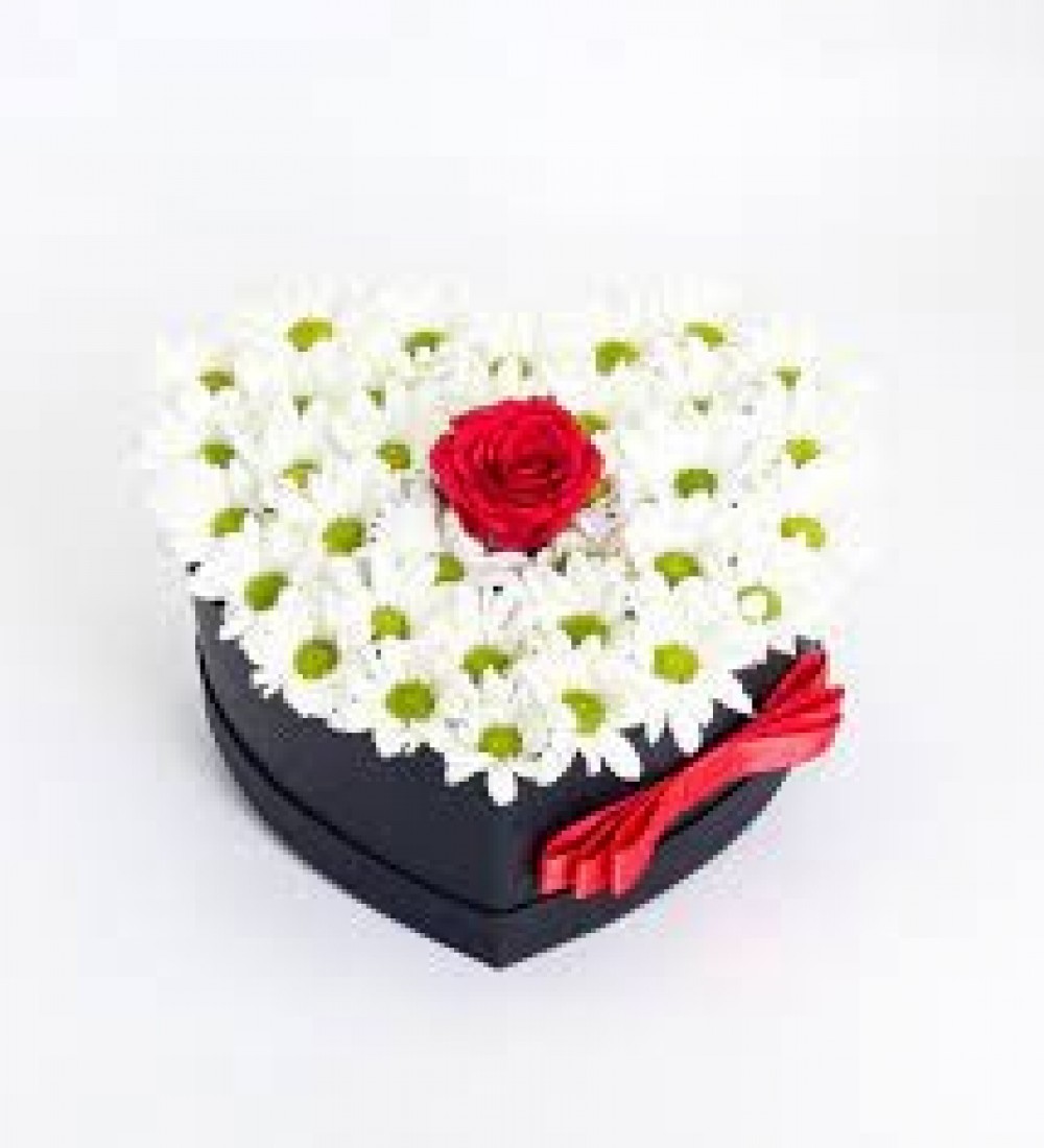 Kalp Kutuda Beyaz Papatya Tek Gül